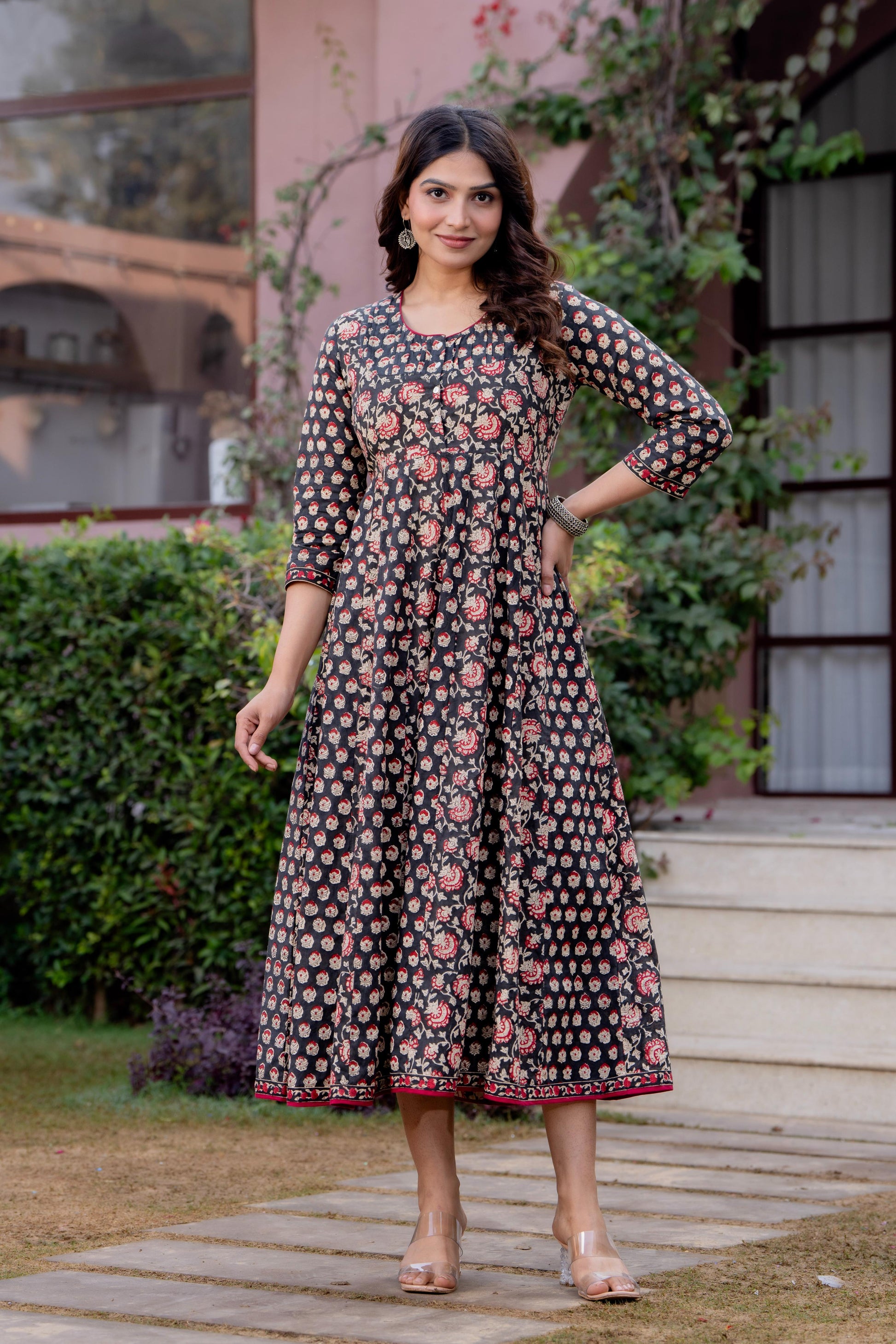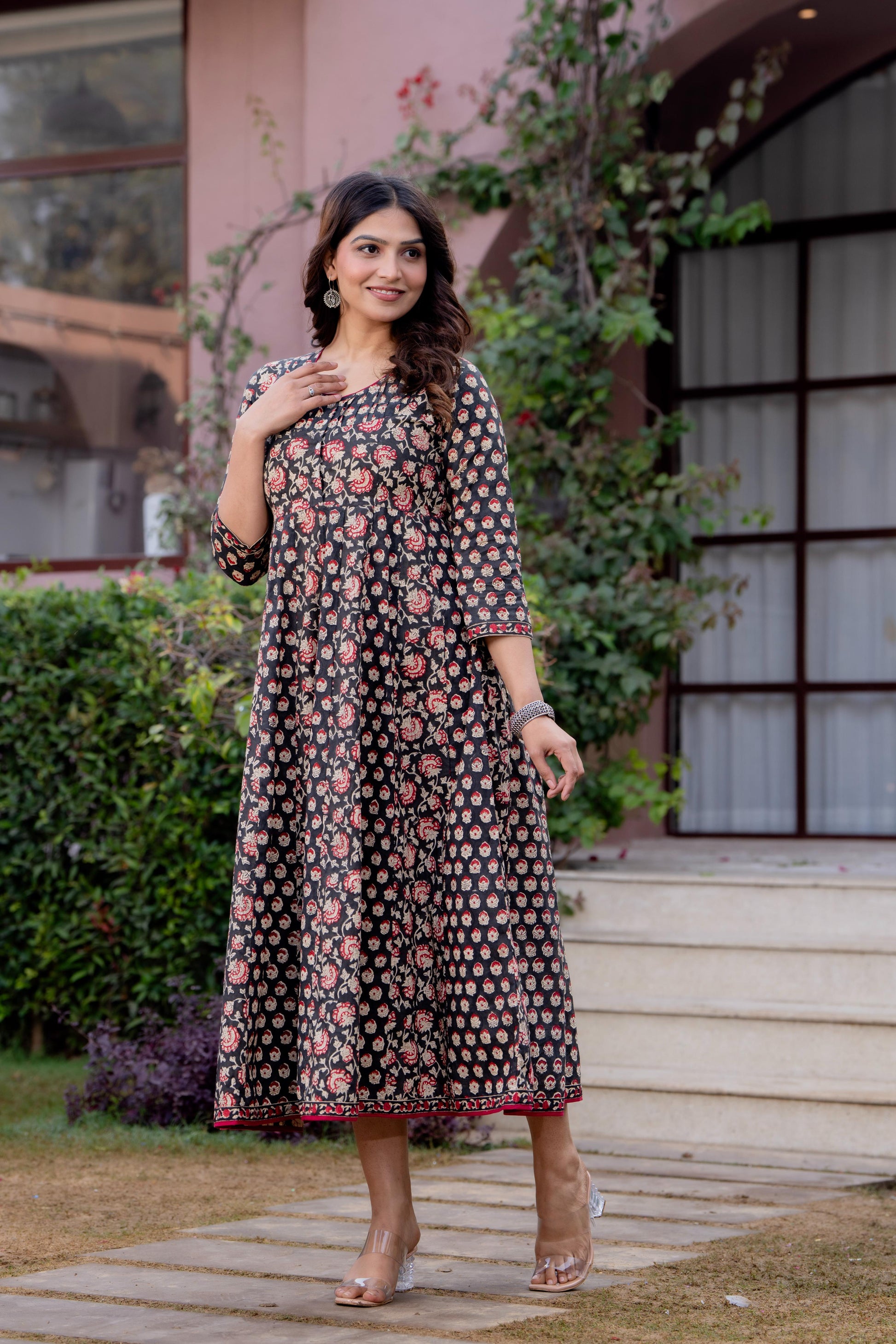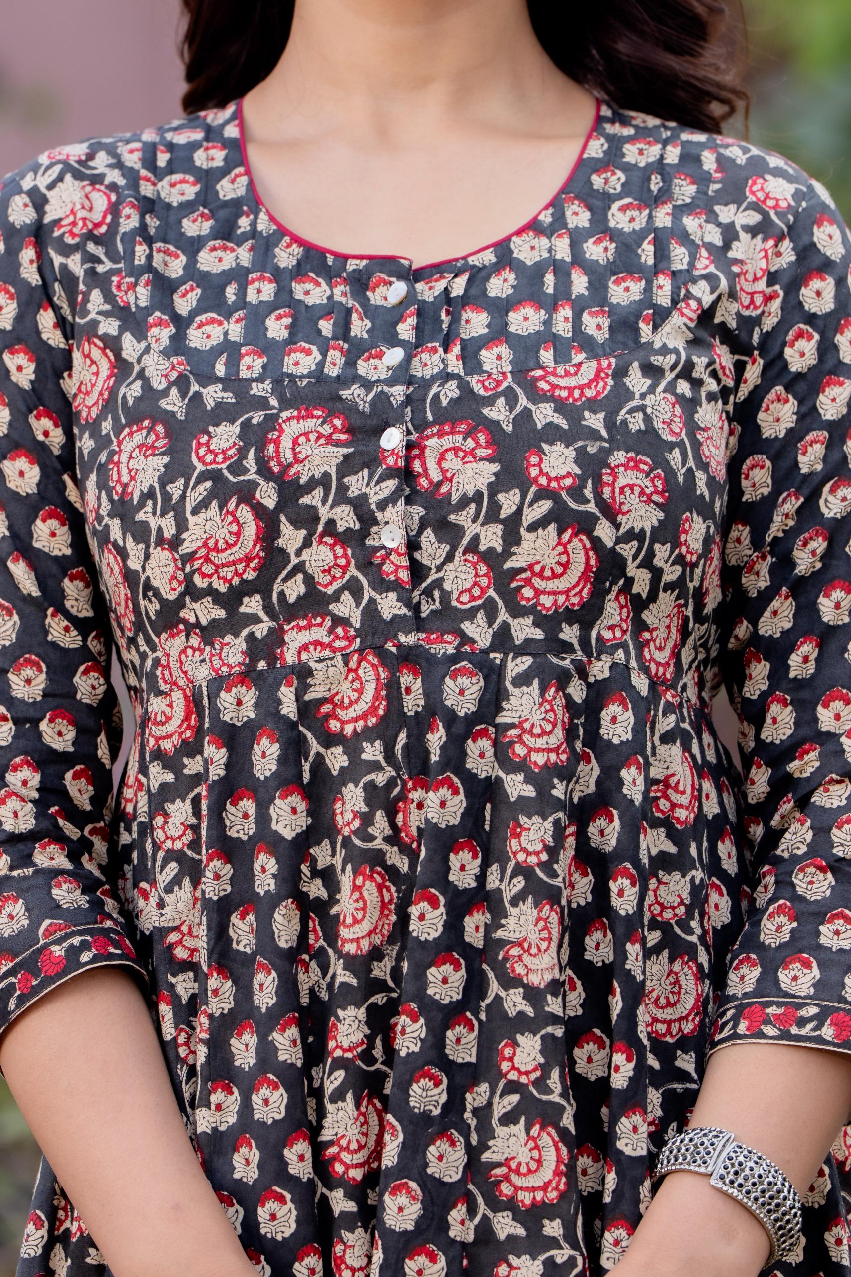 Timeless Blooms hand block print Anarkali Dress