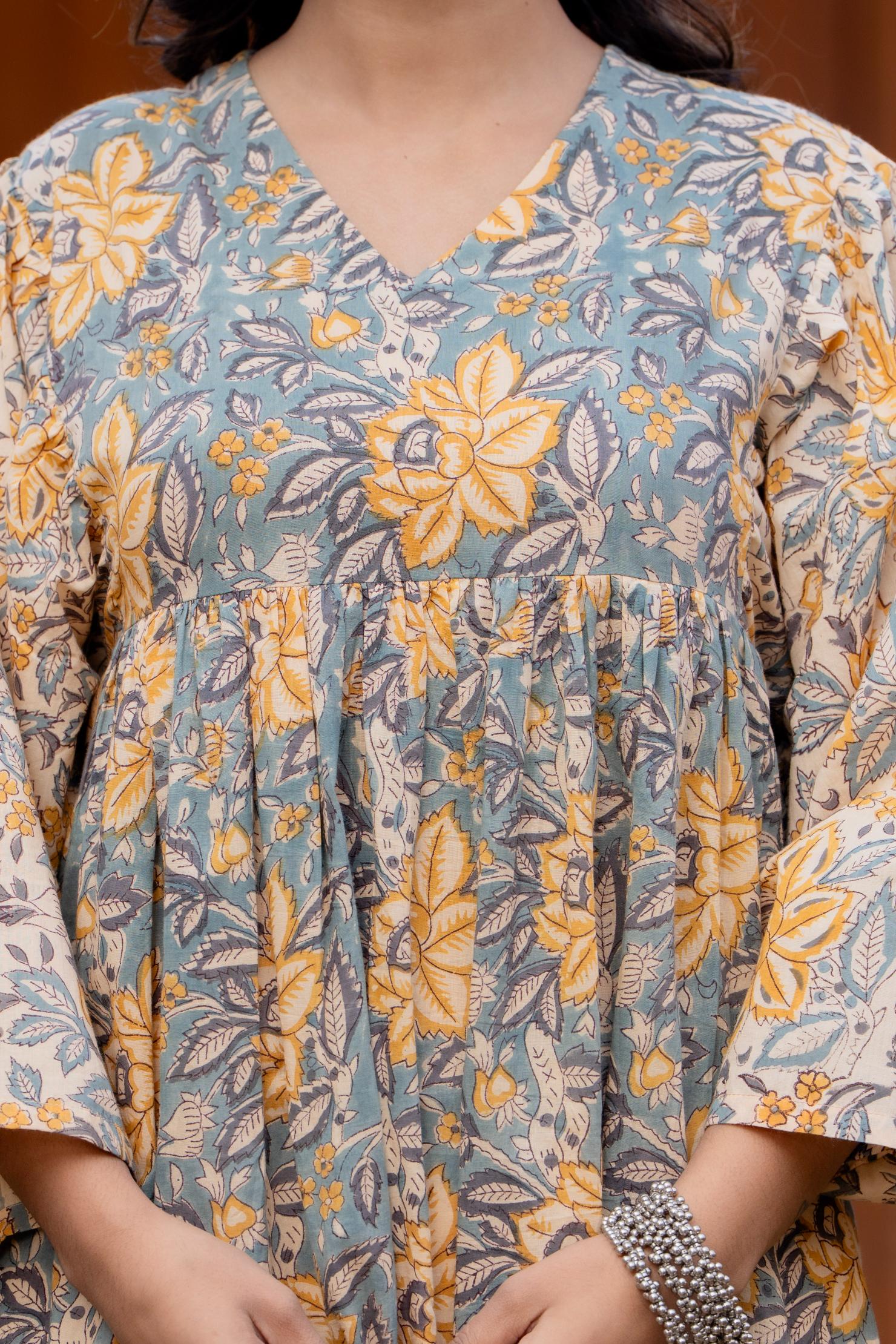 Timeless Blooms hand block print Anarkali Dress