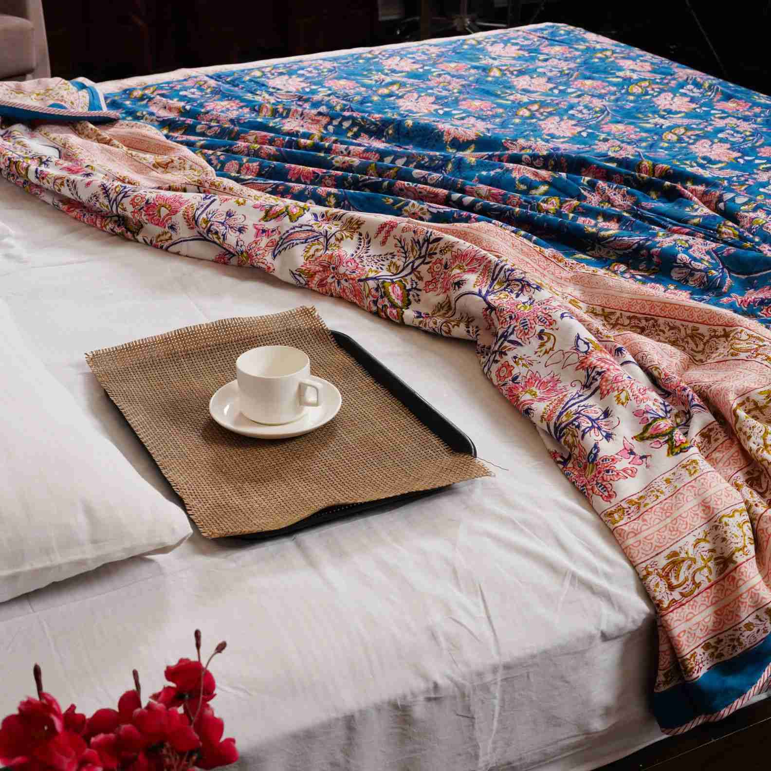 Dohar are extremely versatile as they can be used in an air-conditioned room during hot summer months and during cold wintery nights as well. Wrap yourself in a traditional dohar set designed in a range of colours and patterns that will complement the décor theme of your home. Since dohar blankets are neither too heavy nor too light, they are a perfect snuggle buddy’ for every season.