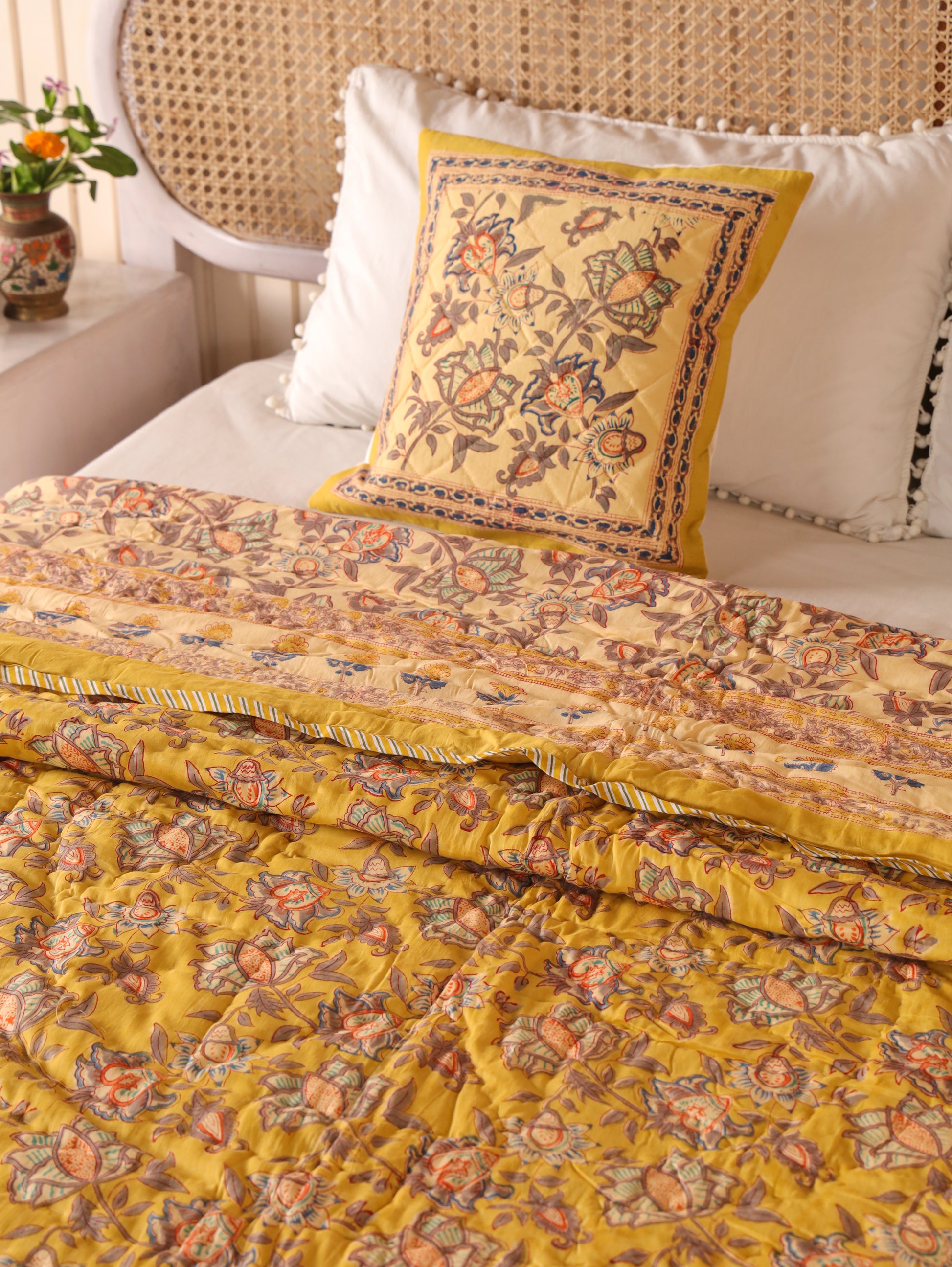 Hand Block Printed Reversible Jaipuri Quilt By Jaipur Hastkar includes: