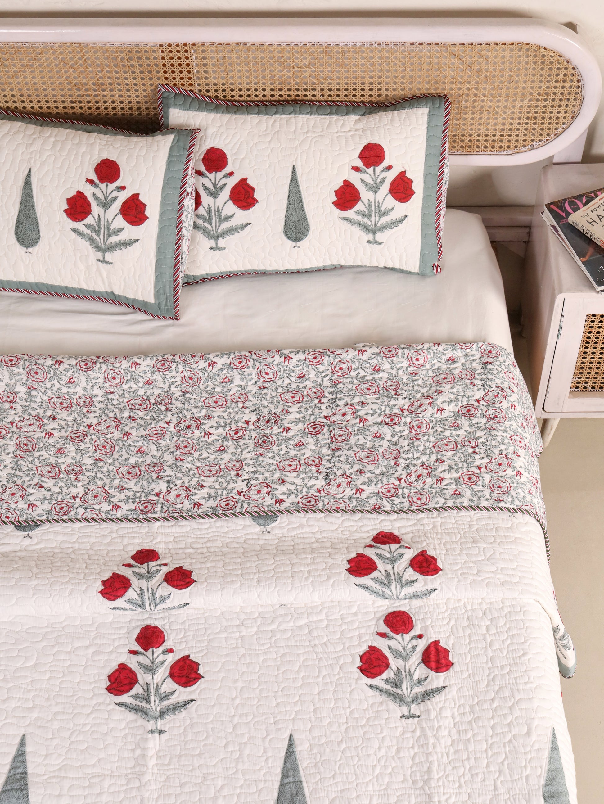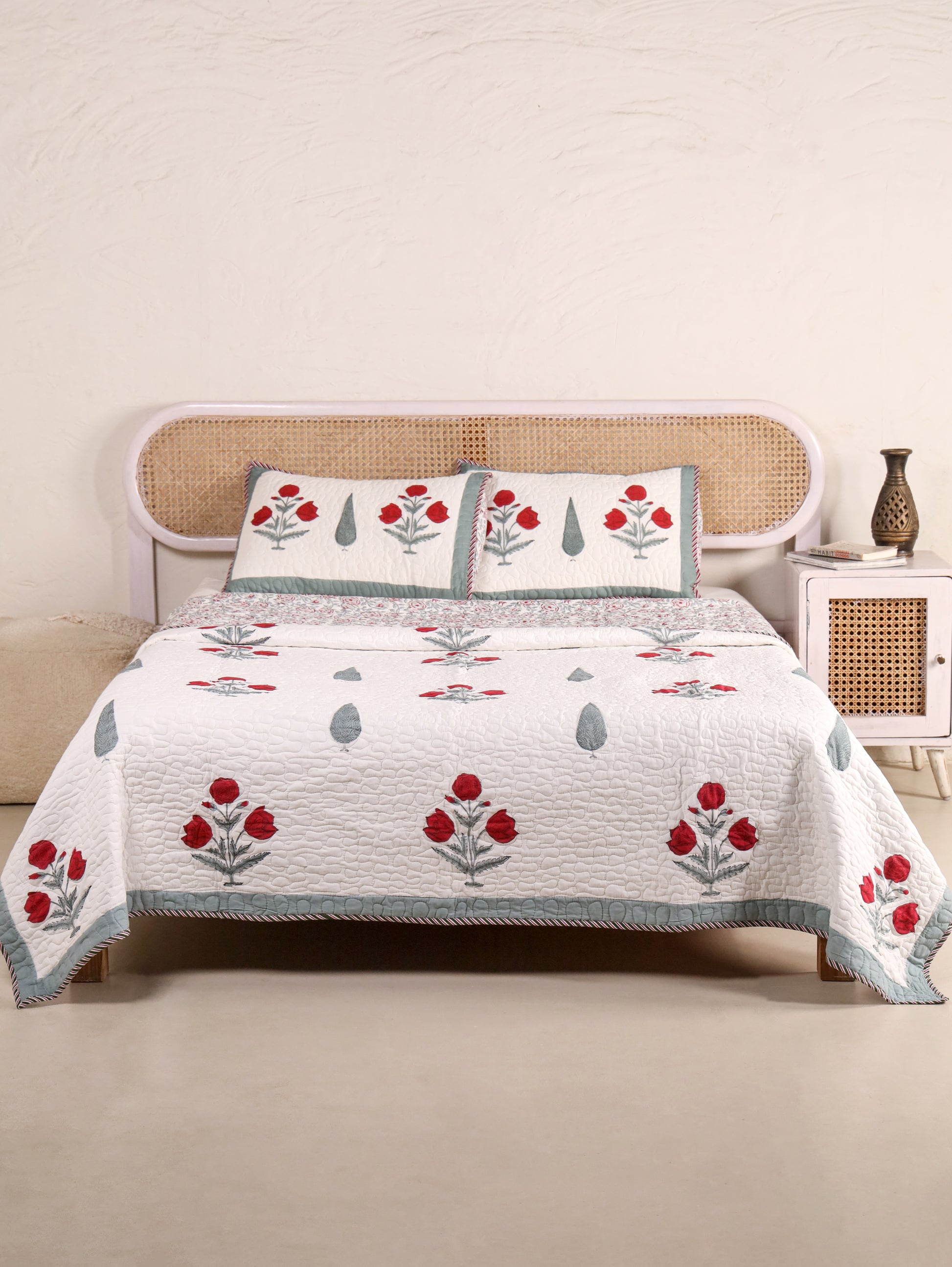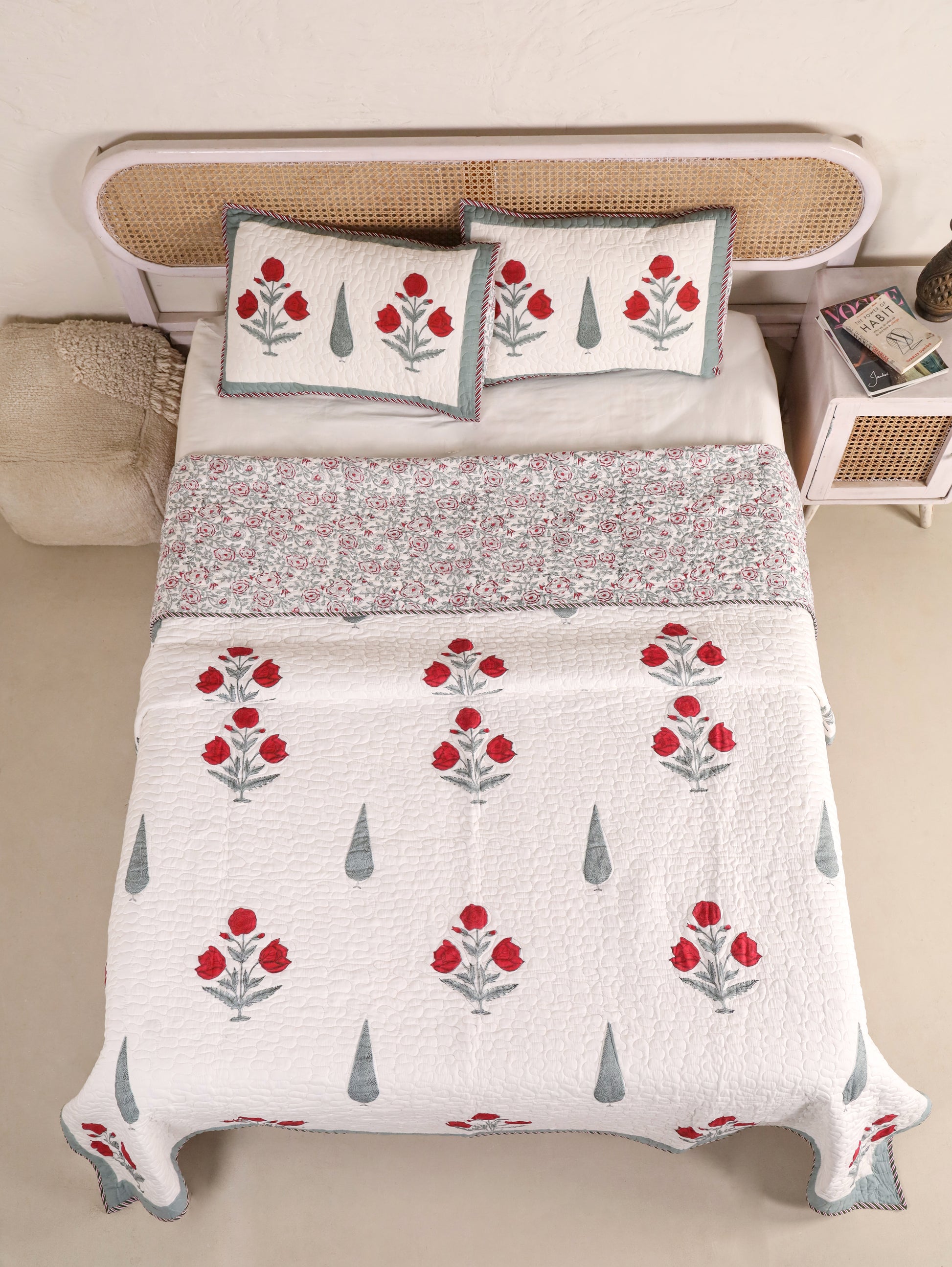 Jaipuri Hand Block Quilted Bedcover Set (with Pillow Covers)