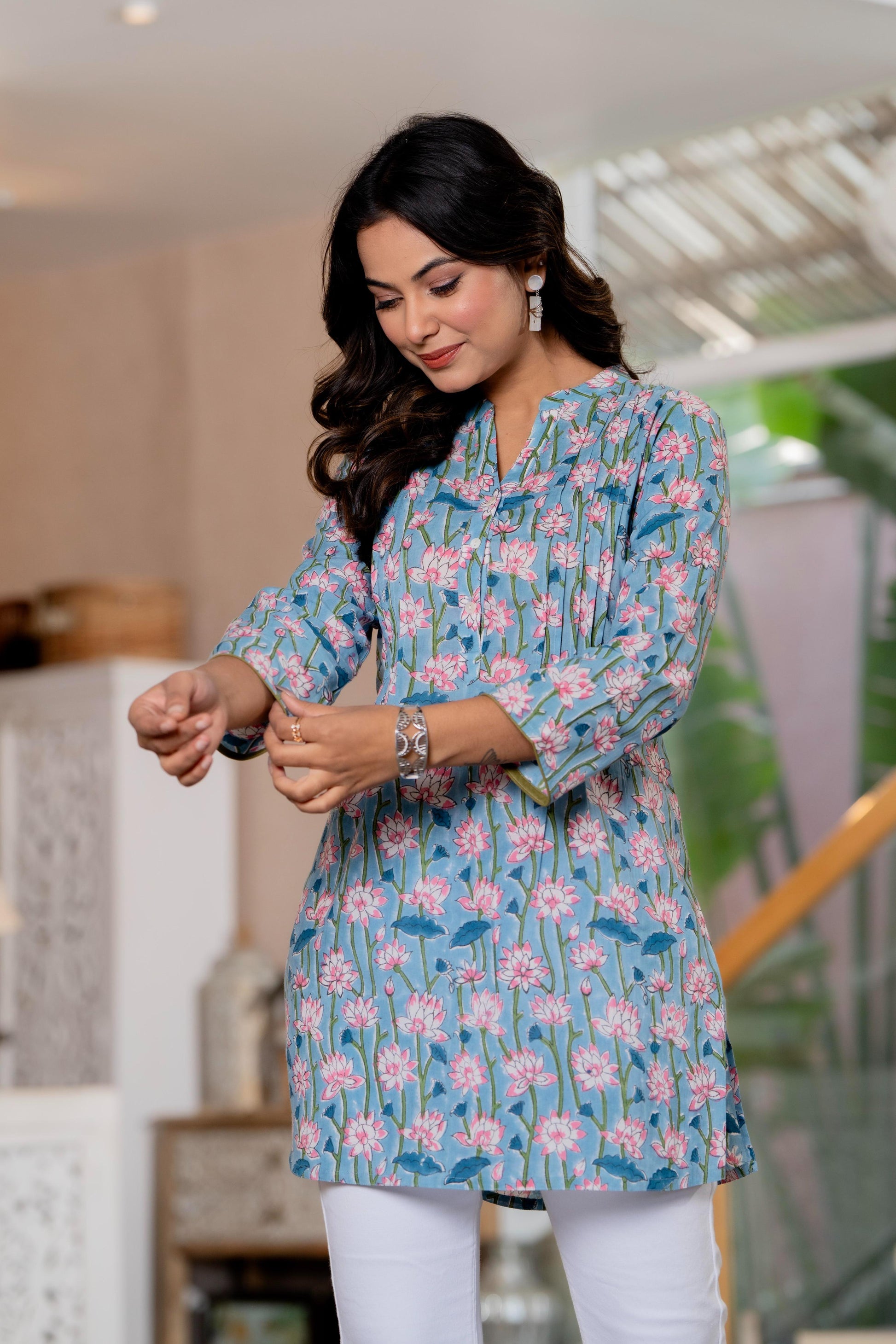 Add a touch of timeless craftsmanship to your everyday style with this Hand Block Printed Short Top, beautifully crafted in 100% pure cotton fabric. Each piece is printed using traditional hand block techniques, making every top uniquely charming with slight natural variations.