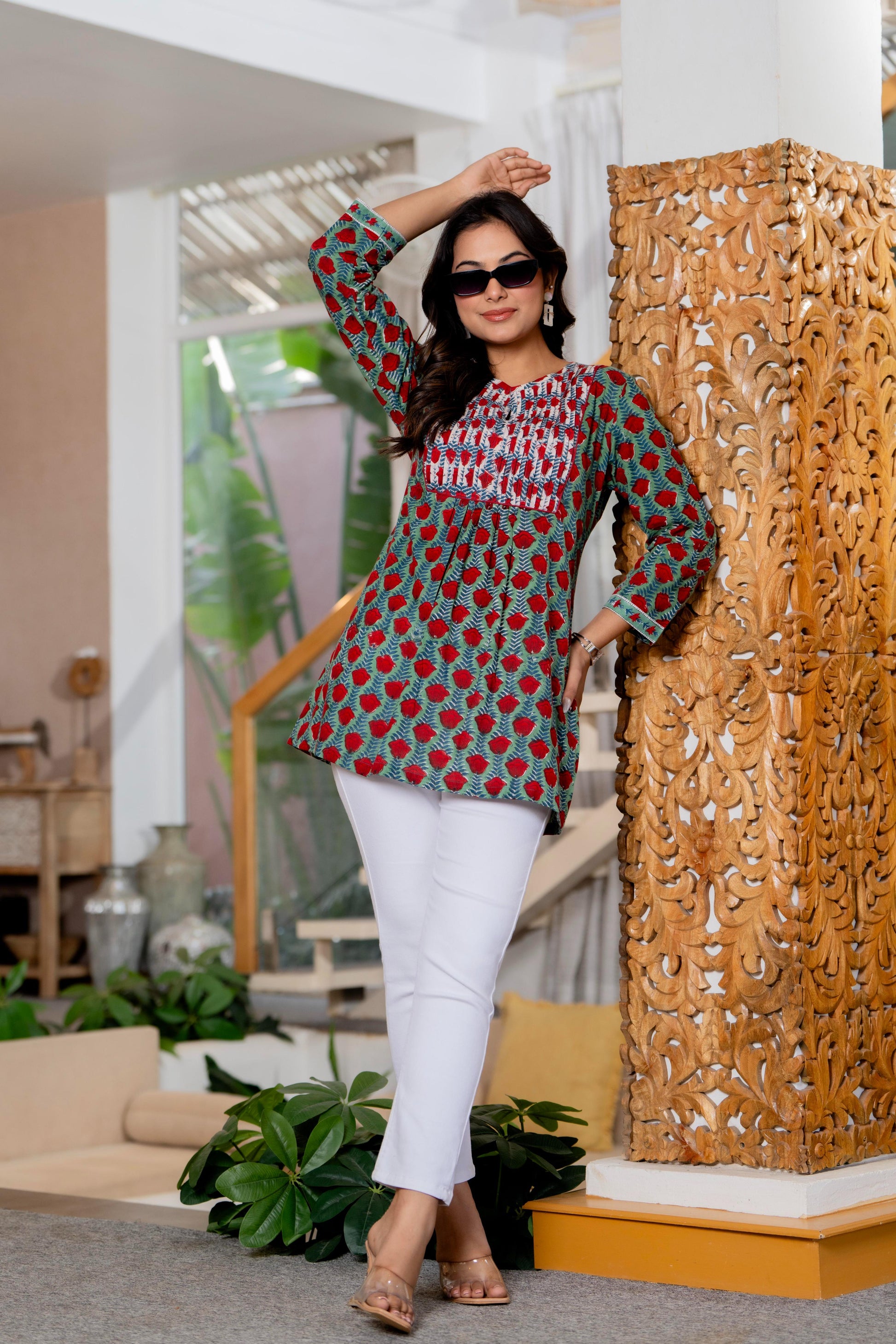 Add a touch of timeless craftsmanship to your everyday style with this Hand Block Printed Short Top, beautifully crafted in 100% pure cotton fabric. Each piece is printed using traditional hand block techniques, making every top uniquely charming with slight natural variations.
